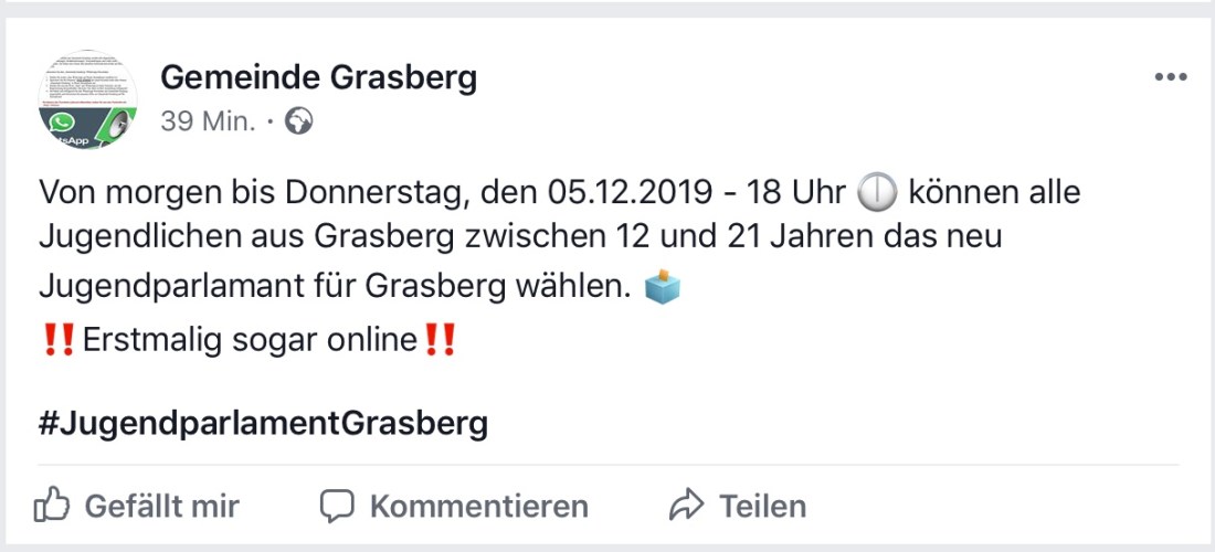 Bitte unterstützt das ehrenamtliche Engagement des Jugendparlaments und wählt! Bzw. liebe Eltern, erinnert Eure Kids daran!