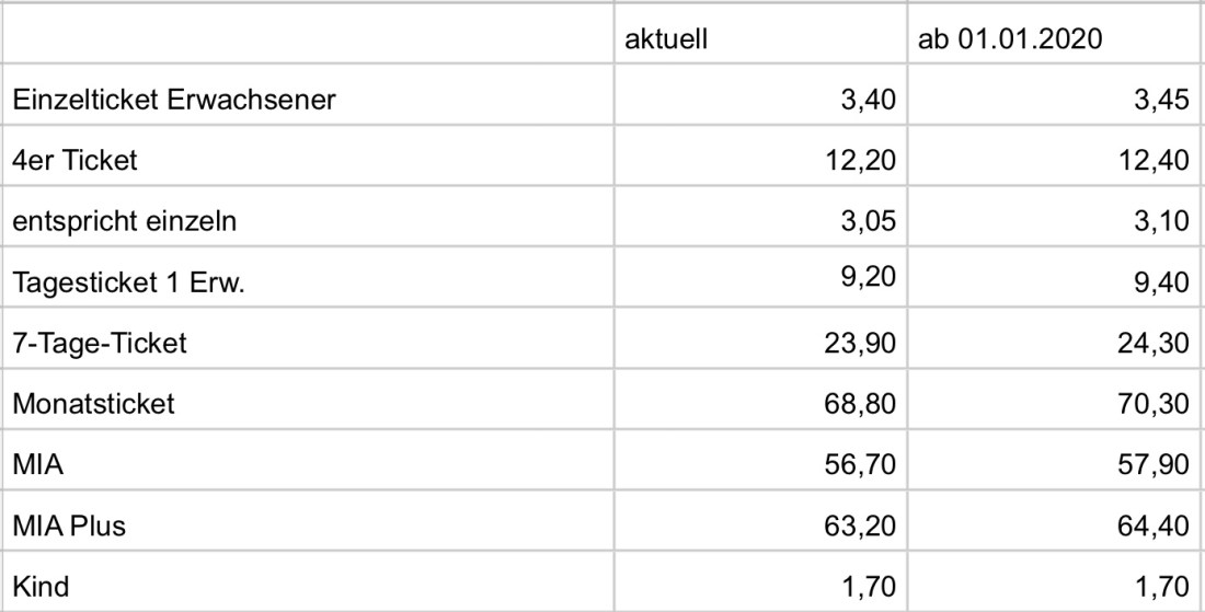 Fast jedes Jahr gibt es die eher unerfreuliche Mitteilung der Öffentlichen Nahverkehrsbetriebe. Die jährliche Tarifanpassung steht ins Haus. Sie soll sich auch nur im Rahmen der Inflationsrate bewegen. Im Zuge der Klimabewegung wird allerorten ein kostenloser Nahverkehr propagiert, damit möglichst viele Menschen vom Auto um- bzw. eher daraus aussteigen. Da ist in meinen Augen eine Preiserhöhung ohne Leistungszuwachs ein falsches Signal.