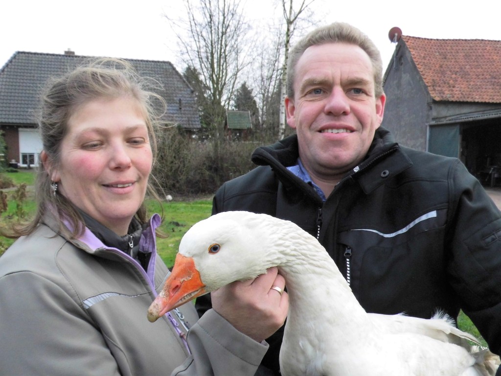 Vor gut zwanzig Jahren bekamen Tanja und Reiner Stelljes von Freunden ein Gänsepaar geschenkt. Diese brüteten vier Gänsekücken, sogenannte Gössel, aus. Die Jungtiere wurden großgezogen und anschließend im Familien- und Freundeskreis als Weihnachtsgänse aufgetischt. Das war der Start in den Geflügel-Direktvertrieb. Heutzutage bekommt das Ehepaar Stelljes seine Tiere als Eintagskücken. Die Gänse und Enten werden in Weidehaltung großgezogen. Tagsüber haben die Tiere Auslauf auf der Wiese und weiden das Gras. Nach der abendlichen Fütterung verbringen sie die Nacht im Stall. Zusätzlich zum Grünfutter erhalten die Tiere Gemüsereste, wie gekochte Kartoffeln oder Kürbis. In einer Ecke Gartenland werden extra Sonnenblumen und Zuckermais für die Gänse angebaut. Sie fressen die kompletten Pflanzen mit Stock und Stiel.